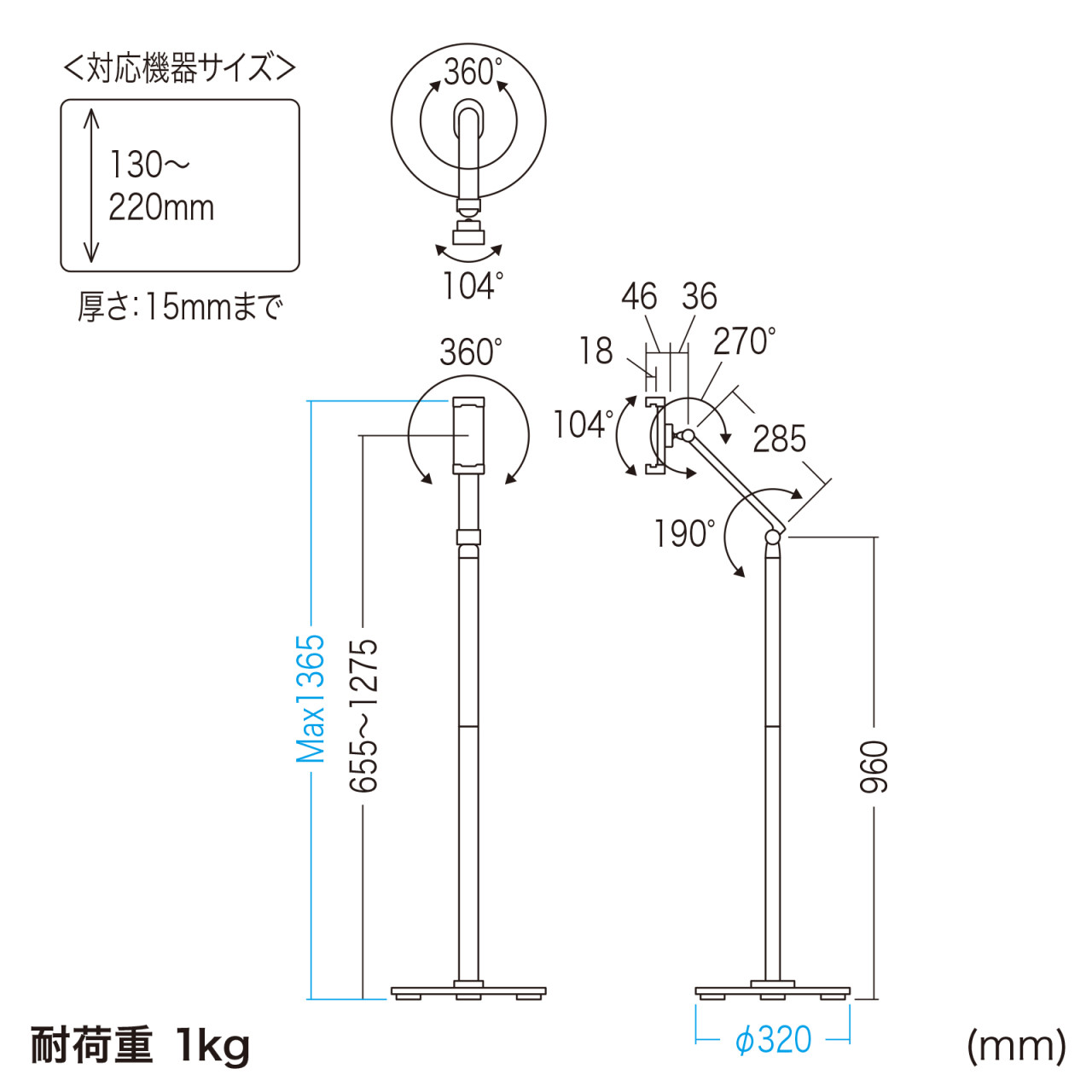 (直径×高) - 320×約745~1365mm